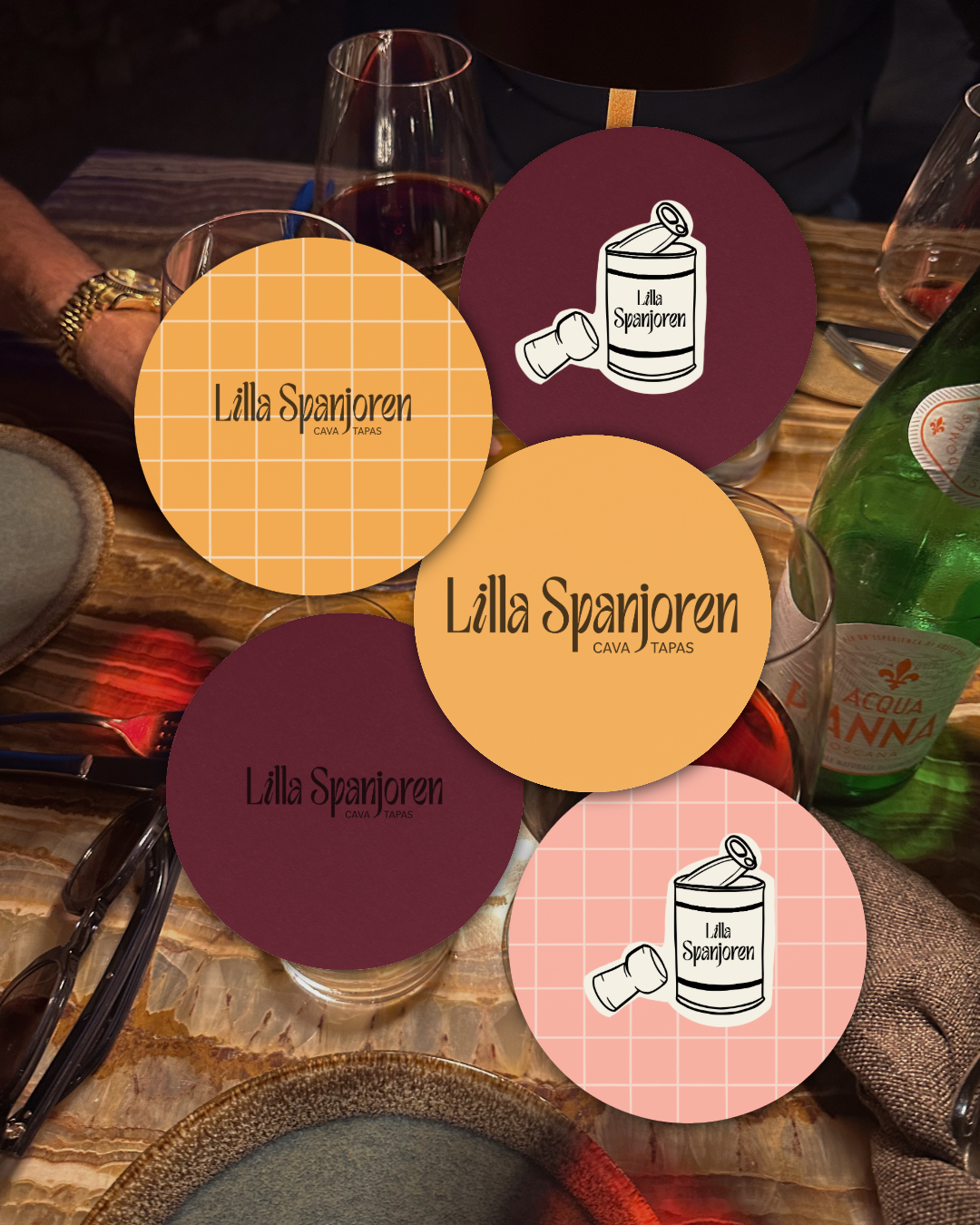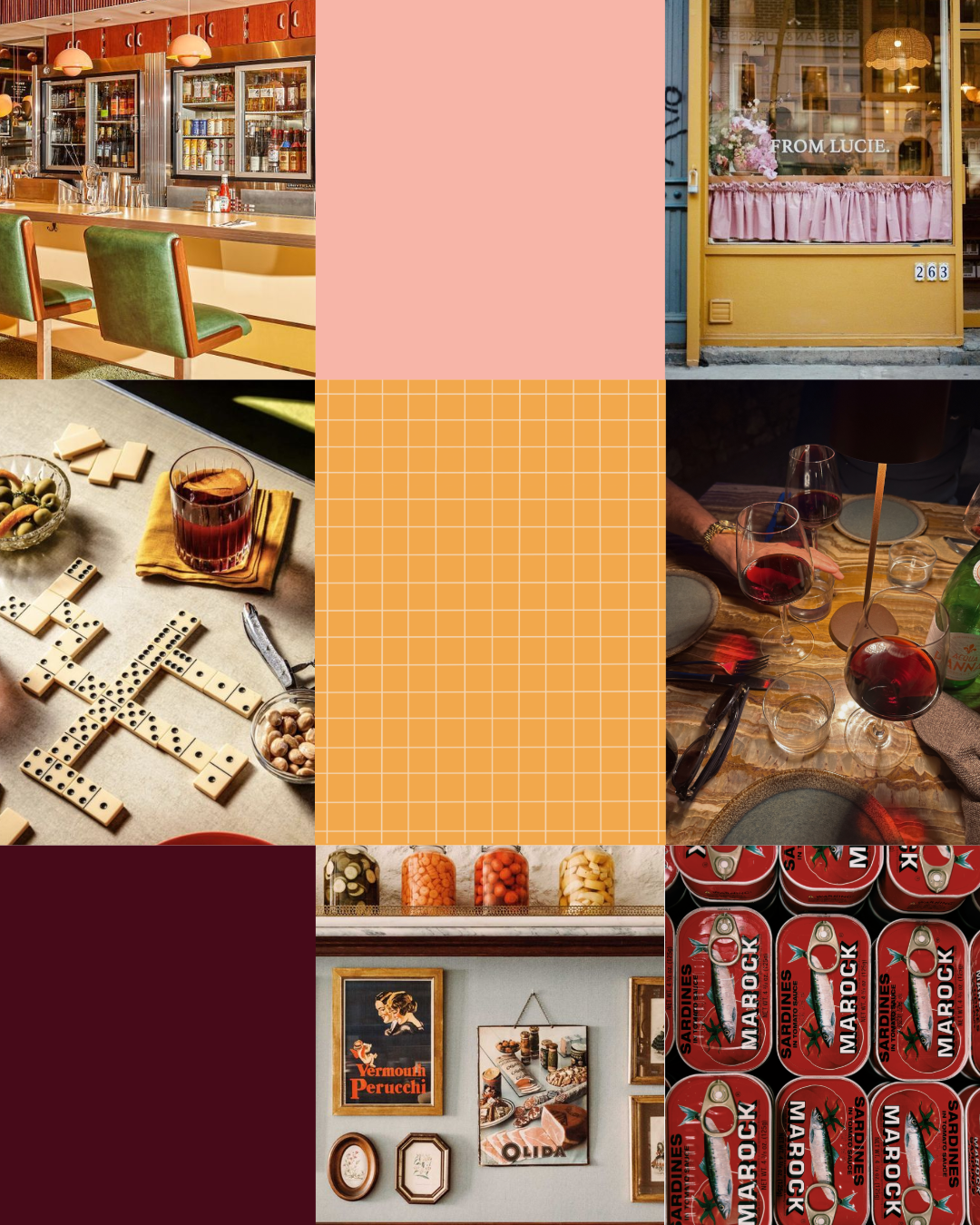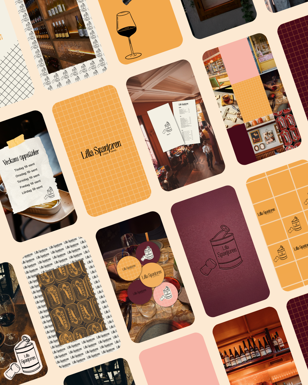 Inspirationen hämtades från barer och bodegor i Palma, Barcelona, San Sebastián och byarna däremellan. Tanken är enkel: droppa in, ta något gott, stanna en stund eller gå vidare. Den känslan fick styra det visuella arbetet.
